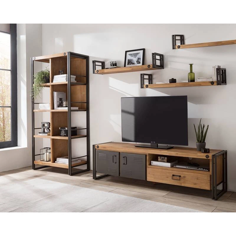 - Étagères : acacia massif brossé et verni