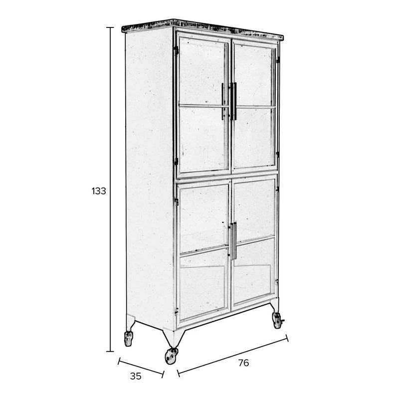 - Contenu de la livraison : Vitrine en bois et métal à roulettes H133cm